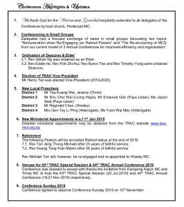 TRAC 43rd Session (19 – 22 Nov 2018) @ Pentecost MC